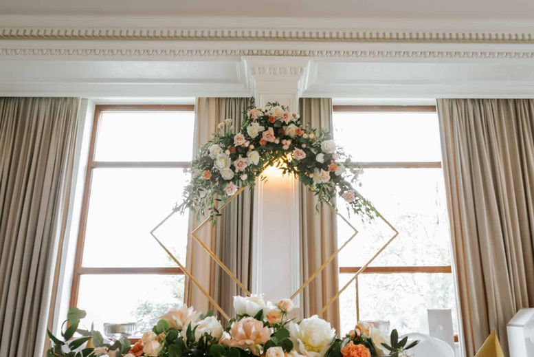 Wystrój Sali Bankietowej w Restauracji Dębowej wykonany jest w stonowanej kolorystyce kremu i brązów. Całość prezentuje się niezwykle elegancko i stanowi wspaniałe tło do wszelkich dekoracji florystycznych.